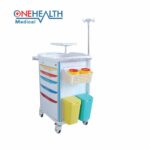 SPESIFIKASI: Rak Defibrillator Tempat Botol Oksigen Rak Samping Geser Stopkontak Kontainer Tajam Kontainer Utilitas Keranjang Debu Kunci Sentral Tiang IV Papan CPR Partisi